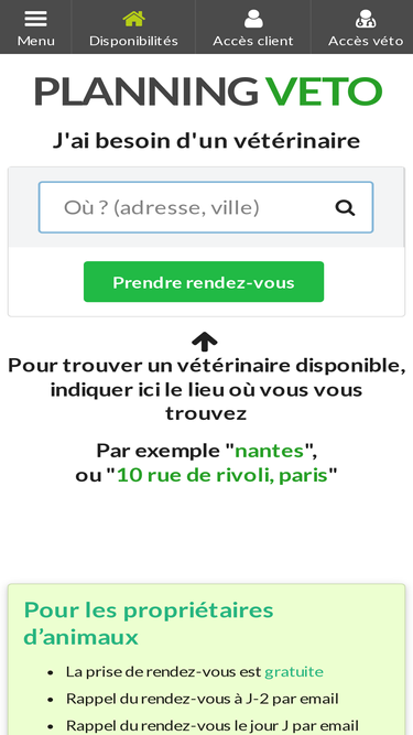 92%Trouvez rapidement un vétérinaire près de chez vous et prenez rendez-vous en ligne gratuitement. Consultez les conseils de nos experts sur les animaux.