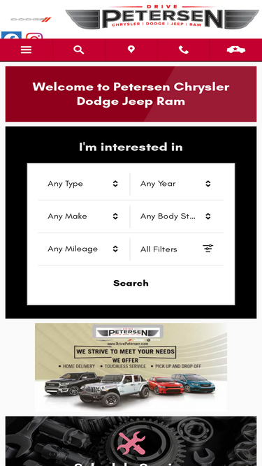 90%visit petersen chrysler dodge jeep ram to find your car, truck, or suv. we proudly serve waupaca, wi and the surrounding areas! browse our inventory today!