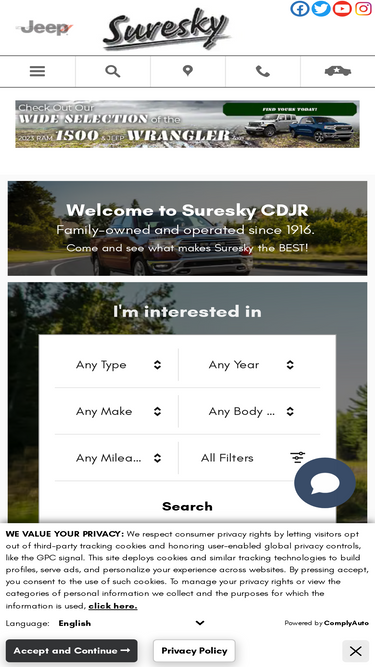 99%visit us at suresky cdjr in goshen for your next new or used jeep, ram, dodge or chrysler car. browse our inventory online and schedule a test drive today!