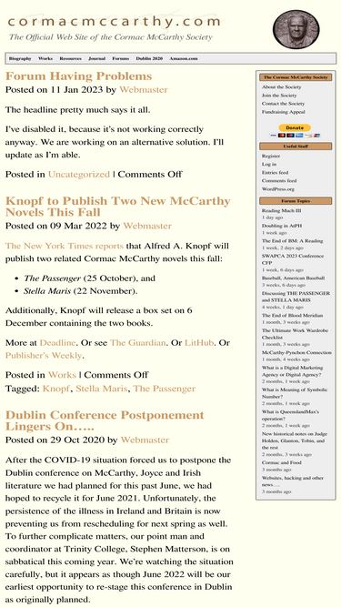 The other five competitors in the top 10 list are catsweb.org, cormacmccarthy.com, eoneill.com, jkrowling.com, and kirjasto.sci.fi.
