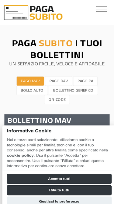 86%Breve descrizione delle modalità per pagare un bollettino mav e i campi che contiene