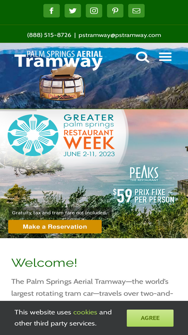 The Palm Springs Aerial Tramway will operate holiday hours Saturday, February 14 - 16 in observance of Presidents’ Day. The first tram up each day will be at 8:00 a.m., the last tram up will be at 8:00 p.m., and the last tram down will be at 9:30 p.m. Tram admission is $34.95 for adults, $31.95 for
