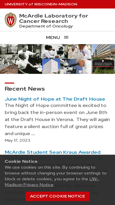 100%The central mission of the McArdle Laboratory for Cancer Research is twofold:To pursue outstanding research programs directed toward understanding the causes and biology of cancer and the factors that regulate normal and neoplastic growth and differentiation.To provide training of the highest quality in basic cancer research at the graduate and postdoctoral levels.