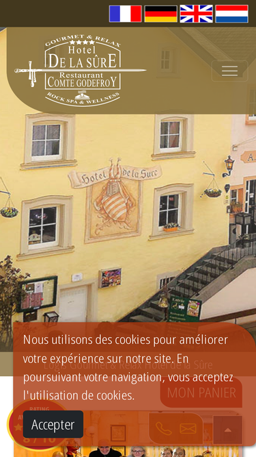 100%le logis gourmet & relax hôtel de la sure, son restaurant comte godefroy et son rock spa wellness est un établissement familial depuis 54 ans, romantique, écologique et calme au pied du plus vieux fort du luxembourg (927) dans la petite ville d’ esch-sur-sûre et sa rivière la sûre en fer à cheval, entouré des montagnes, situé dans le parc naturel du lac de la haute-sûre, un des sites les plus pittoresques du luxembourg. ruelles étroites, églises gothiques, mur d'enceinte avec ses tours, chemins piétonniers, panoramas époustouflants, vastes forêts... a 30 min de luxembourg ville, 1h30 de metz et 2h de bruxelles, venez tester une excellente cuisine française et de terroir au label “gourmet vum sei”, préparé par le fils de la maison, ancien membre de l'équipe nationale des cuisiniers du luxembourg et sa brigade. en séjour touristique ou en voyage d'affaires, à vélo, vtt, moto, oldtimer ou classic-car, vous trouverez tout le confort d'un hôtel moderne : chambres tous confort au logis des chevaliers ainsi deluxe aux logis des comtes et godefroy (jacuzzi-bain moussant ou/et douche massage et bain turque pour 2 ainsi que l'accès wifi gratuit. profitez du calme-détente-nature-sport et . usage gratuit du centre de bienêtre avec sauna, hammam, spa privatif, beauty center, fitness etc.