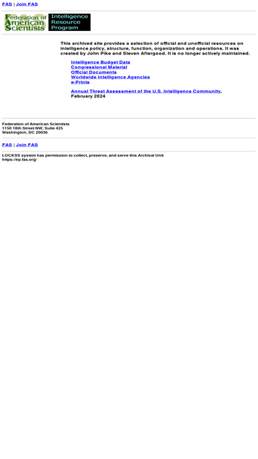 92%documentary sources, analysis and independent criticism of national security intelligence policy from the federation of american scientists