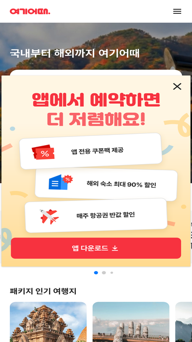 94%여기어때에서 해외숙소, 호텔, 리조트, 펜션, 모텔, 패키지여행, 항공권, 오사카 숙소, 나트랑 숙소, 후쿠오카 숙소까지 특가로 예약하세요.
