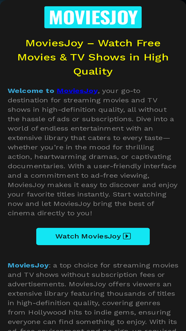 90%explore a world of entertainment at moviesjoy! enjoy your favorite movies and tv shows in hd, no signup or downloads required.