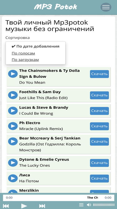 100%«mp3potok.net» — это источник свежих mp3 треков. ➤возможность прослушать песни перед загрузкой. ➤скачивание в одно нажатие. обнови свой плейлист прямо сейчас!