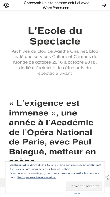 Archives du blog de Agathe Charnet, blog invité des services Culture et Campus du Monde de octobre 2016 à octobre 2018, dédié à l'actualité des étudiants du spectacle vivant