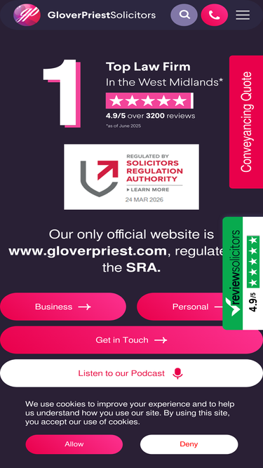 97%Stress-free property buying or selling starts here. GloverPriest’s expert solicitors offer fast, trusted conveyancing with CQS-accredited support.