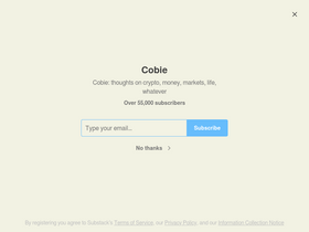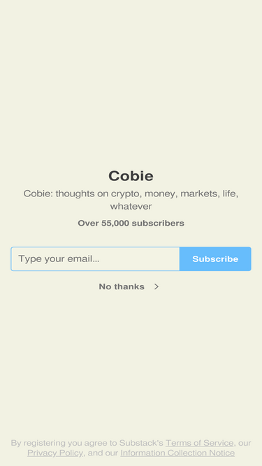 Cobie: thoughts on crypto, money, markets, life, whatever. Click to read Cobie, a Substack publication with tens of thousands of subscribers.