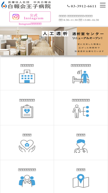 73%東京北区 医療法人社団 中央白報会 白報会王子病院のオフィシャルサイトへようこそ。白報会王子病院は東京北区(王子、赤羽、十条等)や隣接の荒川区における急性期病院です。一般内科、消化器内科、循環器内科、腎臓内科、呼吸器内科、膠原病内科、糖尿病内科、整形外科、乳腺外科(日本乳癌学会認定関連施設)、消化器外科、耳鼻咽喉科、眼科、脳神経外科、皮膚科、泌尿器科、婦人科などの専門外来を行っております。