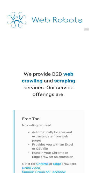 94%We provide B2B web crawling and scraping services. Our service offerings are:Automatically locates and extracts data from web pages Provides you with an Excel or CSV file Runs in your Chrome or Edge browser as extensionGet it for Chrome or