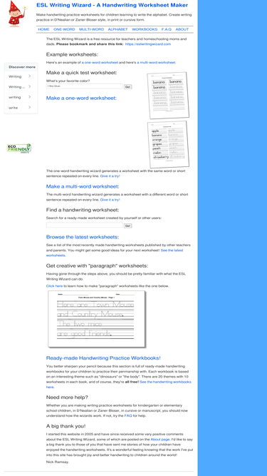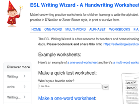97%the writing worksheet wizard automatically makes handwriting practice worksheets. you can create writing practice sheets in d'nealian or zaner-bloser style, in print or cursive form - and it's all for free! make alphabet worksheets or spelling practice sheets. it's easy with the esl writing wizard.