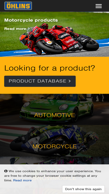 88%Race-proven performance that inspires. Öhlins delivers world-leading suspension technology for MotoGP, Formula 1, UCI series, and a wide range of performance vehicles worldwide.