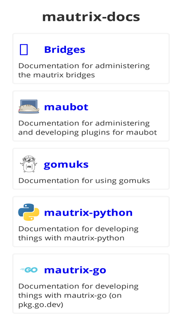 100%Documentation for mautrix bridges, maubot and possibly other things in the future