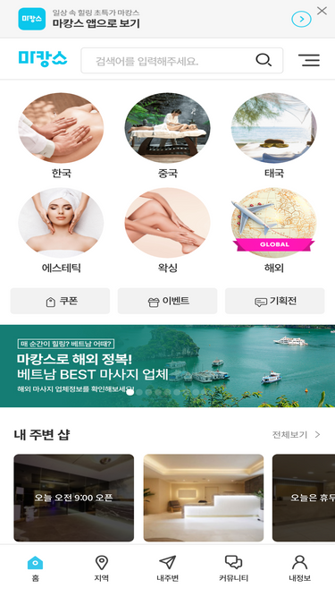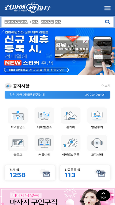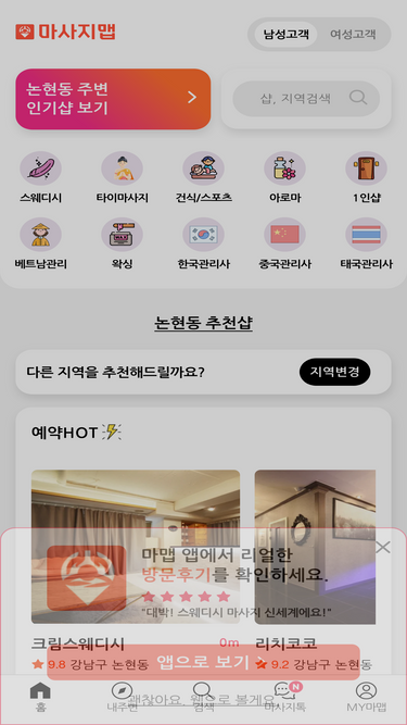 87%내주변 최저가 마사지 검색 - 마사지맵! 타이마사지,중국,한국,1인샵,건마,스웨디시,베트남,마사지,에스테틱,여성전용 마사지,산전마사지,산후마사지,스포츠, 홈케어,감성,로미로미,왁싱 등 전국 마사지 포털 마맵