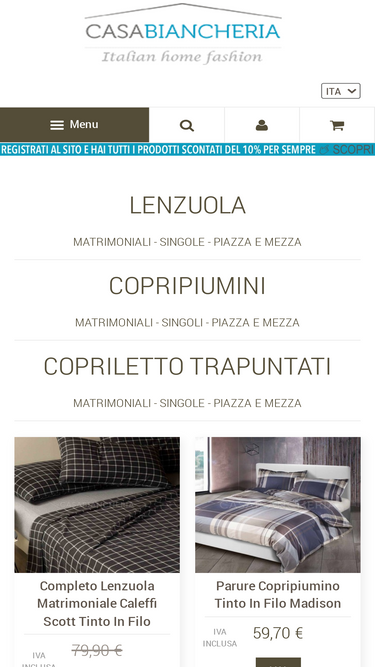 97%Scopri il nostro vasto catalogo di biancheria per il letto, il bagno, la cucina e il living. 70 anni di esperienza per offrirti i migliori brand di tessili per la casa ai migliori prezzi.