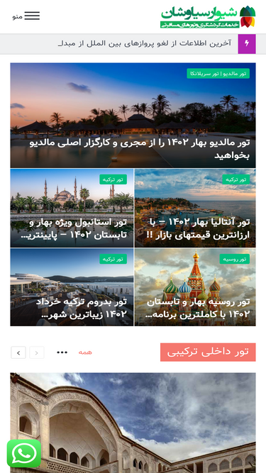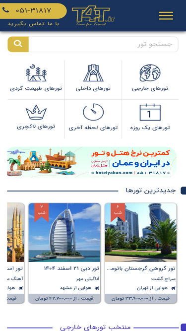 99%تی فور تی بروزترین مرجع تورهای مسافرتی آژانسهای مشهد-قبل از سفر حتما با ما تماس بگیرید 05131817000-تورهای مسافرتی با جزئیات کامل و نرخهای بروزشده فقط در سایت و شبکه های اجتماعی تی فور تی-برای دیدن جزئیات کلیه تورهای آژانسهای مسافرتی مشهد به وبسایت ما مراجعه کنید-انواع تورهای یکروزه,طبیعتگردی,داخلی و خارجی فقط با یک تماس 05131817000