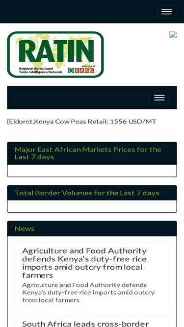 29%eagc ratin system is a quick way for farmers, traders and processors to get regional market information anywhere, any time, easily using mobile phones or computers ratin was developed to provide members and stakeholders with improved early warning marketing and trade information, leading to more efficient and competitive transactions in food trade between surplus and deficit regions. ratin provides real time, relevant and accurate information with regional coverage in 5 countries including kenya, uganda, tanzania, burundi and rwanda. plans are in place to expand the coverage of ratin to all the 10 countries in the eastern african region and further develop partnerships in the southern, western and northern africa regions for increased market coverage.