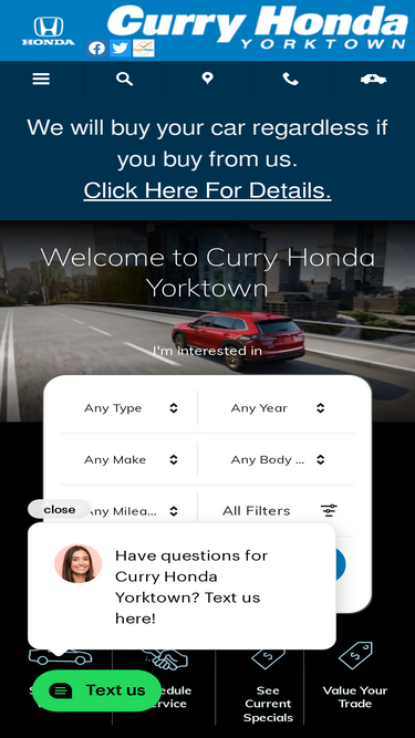 87%welcome to curry honda yorktown, where you can buy or lease a honda nearby, schedule honda service or order car parts! finance a used honda in new york.