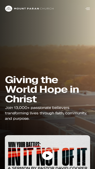 Find your place to belong at Mount Paran Atlanta, GA. We have a just for you! Worship Sundays 9 & 11AM. 2055 Mt Paran Rd NW. Worship services, online church services, Christian resources & church missions.
