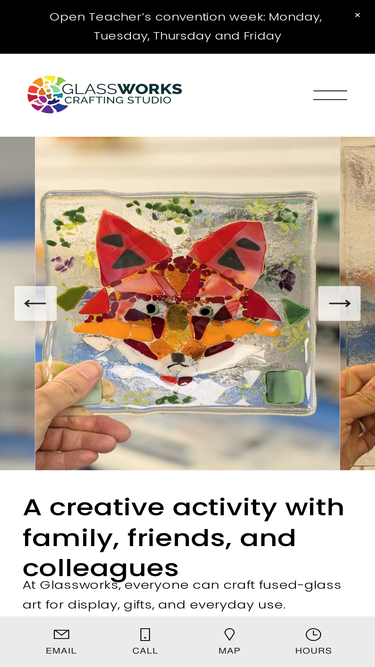 100%Glassworks Studio hosts numerous workshops and special events. This is an ideal indoor activity for people who like to craft, budding artists, school-age children, and adults seeking opportunities to make art.