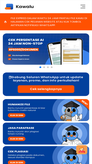 81%Dapatkan layanan deteksi plagiarisme. Cek keaslian karyamu secara otomatis 24 jam, dengan solusi jasa parafrase untuk mengurangi hasil plagiarisme yang tinggi. Jaminan keaslian karya dan integritas akademis dengan Kawalu.