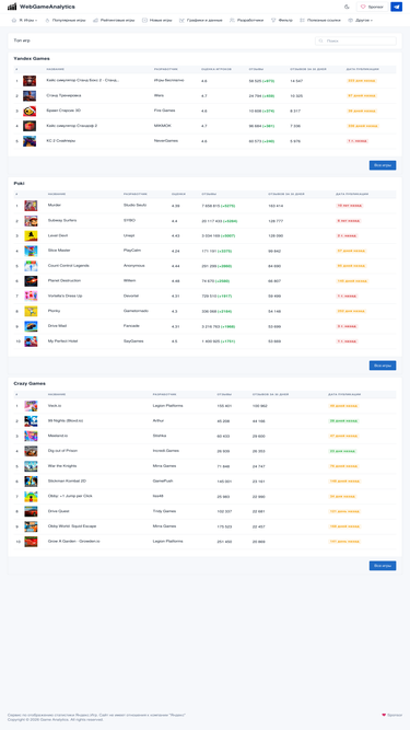 76%бесплатная аналитика по яндекс играм, популярные игры, новинки, последние публикации