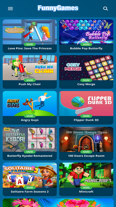 74%Funnygames.fi sivuilla voit pelata yli 8000 ilmaista online peliä. Pelaa nyt suosikki peliäsi Funnygames.fi!