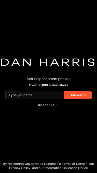 89%Self-help for smart people. Click to read Dan Harris, a Substack publication with hundreds of thousands of subscribers.