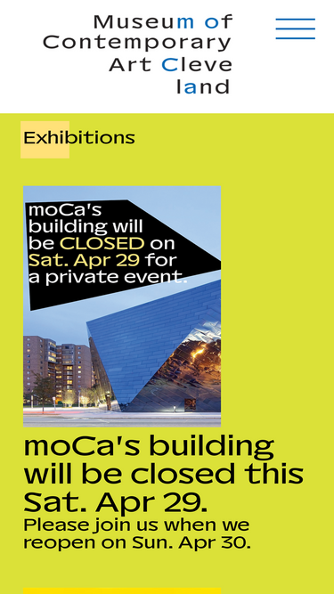 85%moCa Cleveland brings art now through free exhibitions and events. All ages welcome. Free daily admission.