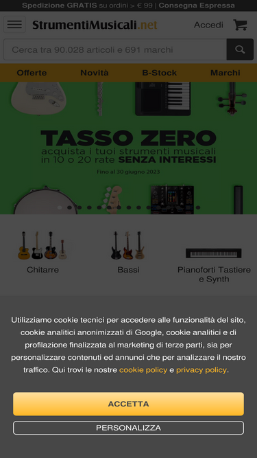 90%Strumenti Musicali .net è il primo negozio online di strumenti musicali. Migliaia di offerte su chitarre, batterie, tastiere, prodotti per DJ, home recording, spartiti, impianti audio, luci e forniture a negozi ai migliori prezzi.
