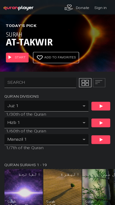 Slide by Slide Quran Player in over 100 languages. For personal and masjid use.