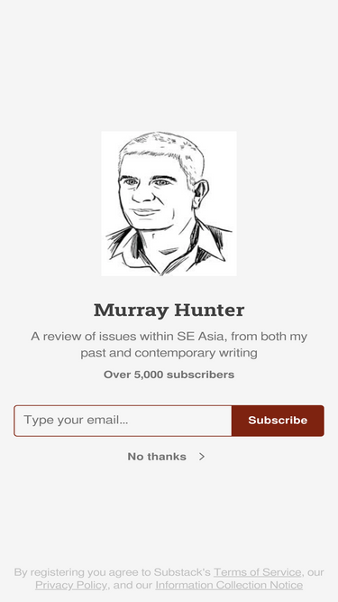 100%a review of issues within se asia, from both my past and contemporary writing. click to read murray hunter, a substack publication with thousands of subscribers.