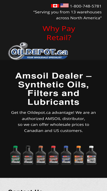 100%Call Oil Depot 1-800-748-5781, AMSOIL dealer Canada and USA for synthetic motor oil, greases, transmission fluids, gear oil for auto, powersports, industry.