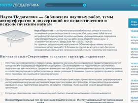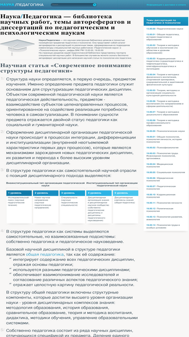 наука педагогика это электронная научная библиотека целиком и полностью посвященная предметам педагогике и психологии она представяет собой каталог авторефератов и диссертаций по различным темам, сформированным из подразделов номенклатуры специальностей научных работников педагогические науки, шифр вак рф 13.00.00 и психологические науки 19.00.00