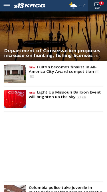 88%KRCG offers coverage of news, sports, weather and local events in the Columbia and Jefferson City, Missouri area, including the communities of New Bloomfield, Shaw, Boonville, Ashland, Hallsville, Sturgeon, Centralia, Mexico, Auxvasse, Fulton, California, Tipton, Eldon, Wardsville, Westphalia and Sedalia, Missouri.