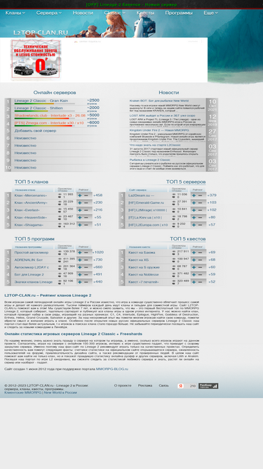 98%Ежедневно следим за развитием MMORPG онлайн игры Lineage 2 в России и публикуем топ кланы, лучшие сервера онлайн, софт и программы, квесты и новости.