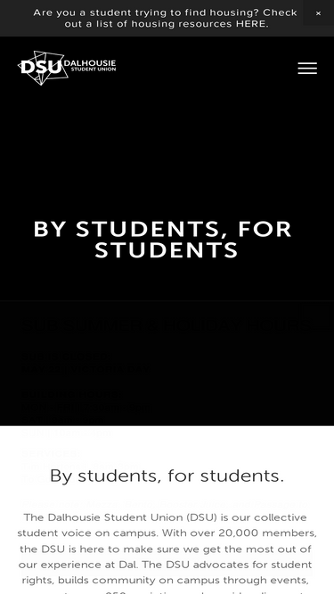 100%The Dalhousie Student Union (DSU) is our collective student voice on campus. With over 18,500 members, the DSU is here to make sure we get the most out of our experience at Dal. The DSU advocates for student rights, builds community on campus through events, supports nearly 400 societies, and provid