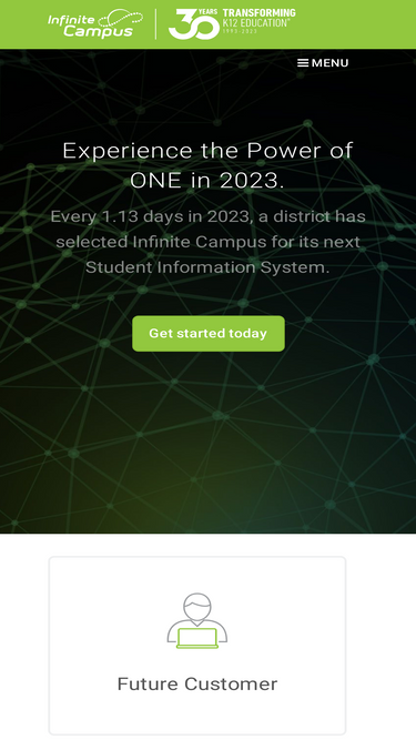 83%Infinite Campus helps schools and their stakeholders by Transforming K12 Education®. Districts use our flagship student information system to streamline educational processes, promote stakeholder collaboration and personalize learning. Administrators efficiently run their schools and spend more time with kids. Teachers take advantage of digital learning tools to deliver instruction in a way that each student can best relate. And, students and parents access learning information in real-time via web browsers and mobile apps.