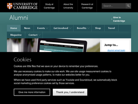 89%University of Cambridge alumni website with news, events, CAM magazine, Alumni Groups, the travel programme and other benefits