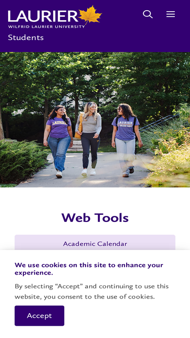 100%Wilfrid Laurier University’s website for current students: aim high, work hard and take advantage of amazing opportunities to make a difference.
