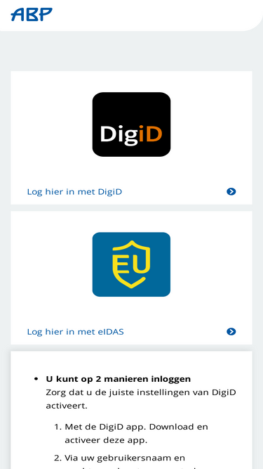 95%Op MijnABP krijgt u inzicht in uw pensioen. Digitale post wordt hier opgeslagen. Gegevens past u zelf aan. Inloggen met DigiD.