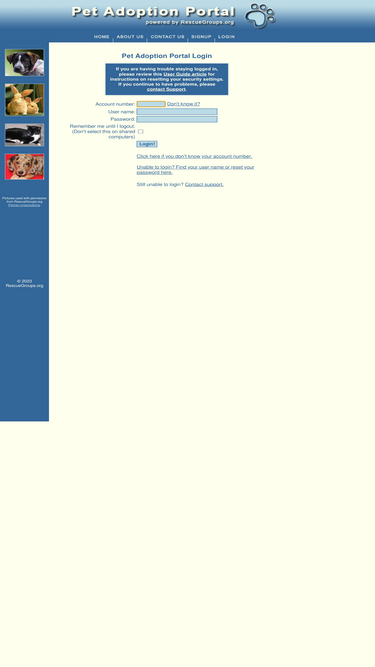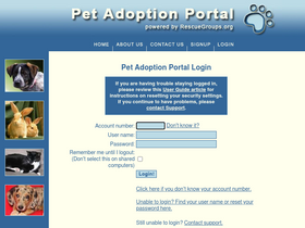 pet adoption portal for animal data upload, powered by rescuegroups.org