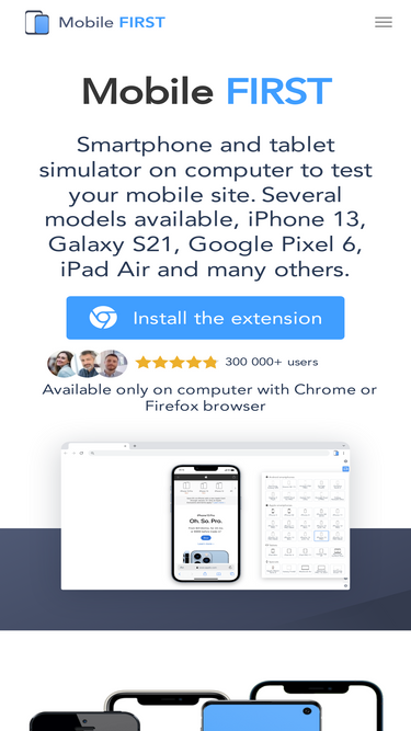 76%Very realistic smartphone and tablet simulator with several models available to test your responsive site. iPhone 16, Galaxy S25, Google Pixel 6, iPad Air and many more.