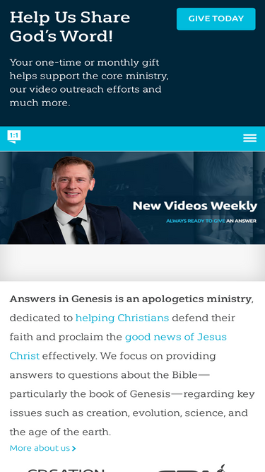 78%Answers in Genesis is an apologetics ministry, dedicated to helping Christians defend their faith and proclaim the good news of Jesus Christ effectively.
