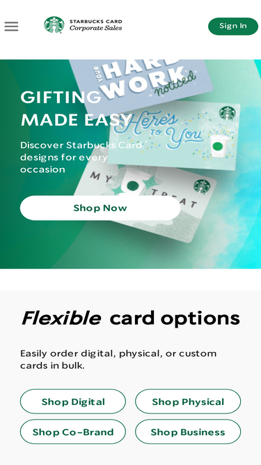 80%starbucks cards for business are a great way to reward your team, thank a client, and incentive business development. shop unique designs and add custom logos or messaging today!