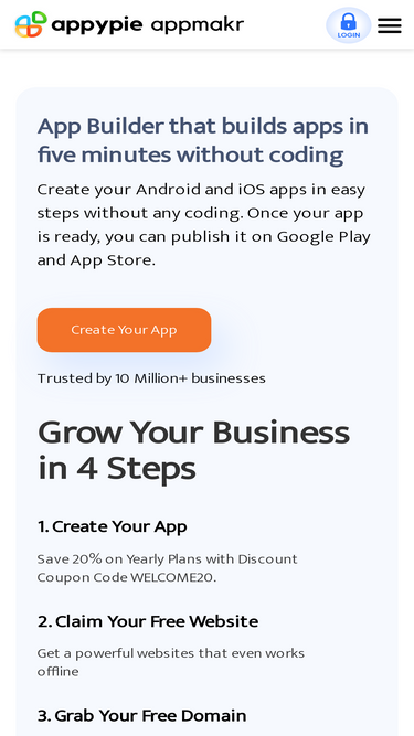 84%Create your own mobile app without any coding. Appy Pie's App Builder provides the simplest way to build an app and launch it on the App Store & Google Play. Get started with Appy Pie's App Maker and create your own mobile app today!