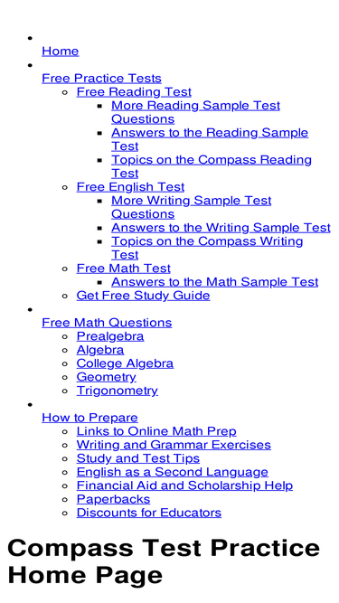 73%compass test practice - get ready for your placement exam with our free test practice in math, writing, and reading. downloads and free study guide.